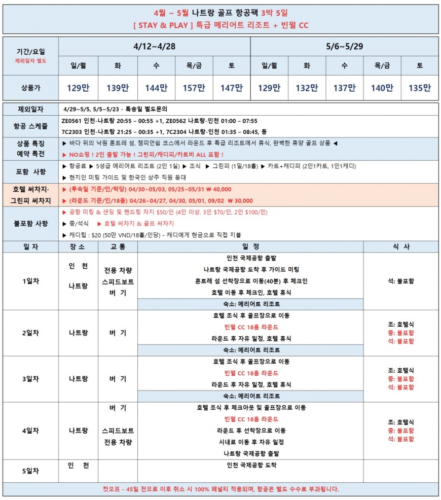 · 본 상품은 예약일자에 따라 금액이 인상 될수 있습니다. 선착순 요금 & 선착순 마감 적용!